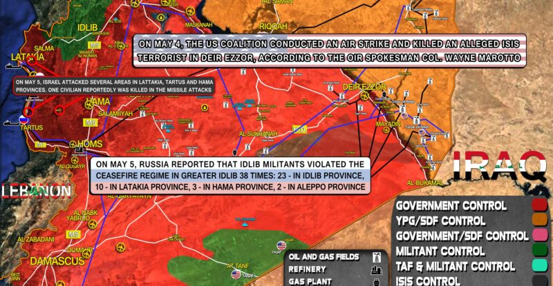 On May 5, Russia reported that Idlib militants violated the ceasefire regime in Greater Idlib 38 times: 23 – in…