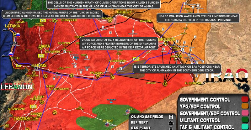 A brief overview of the recent developments in Syria: US-led coalition warplanes struck a motorbike near the Kubaiba oil field…