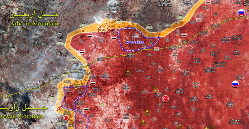 This map provides a general look at the progress of the Syrian Army’s operations in Greater Idlib in the period…