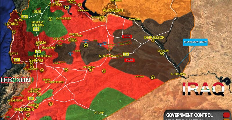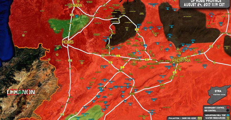 This map provides a general look at the military situation in Syria on August 23, 2017. The Syrian-Iranian-Russian alliance has…