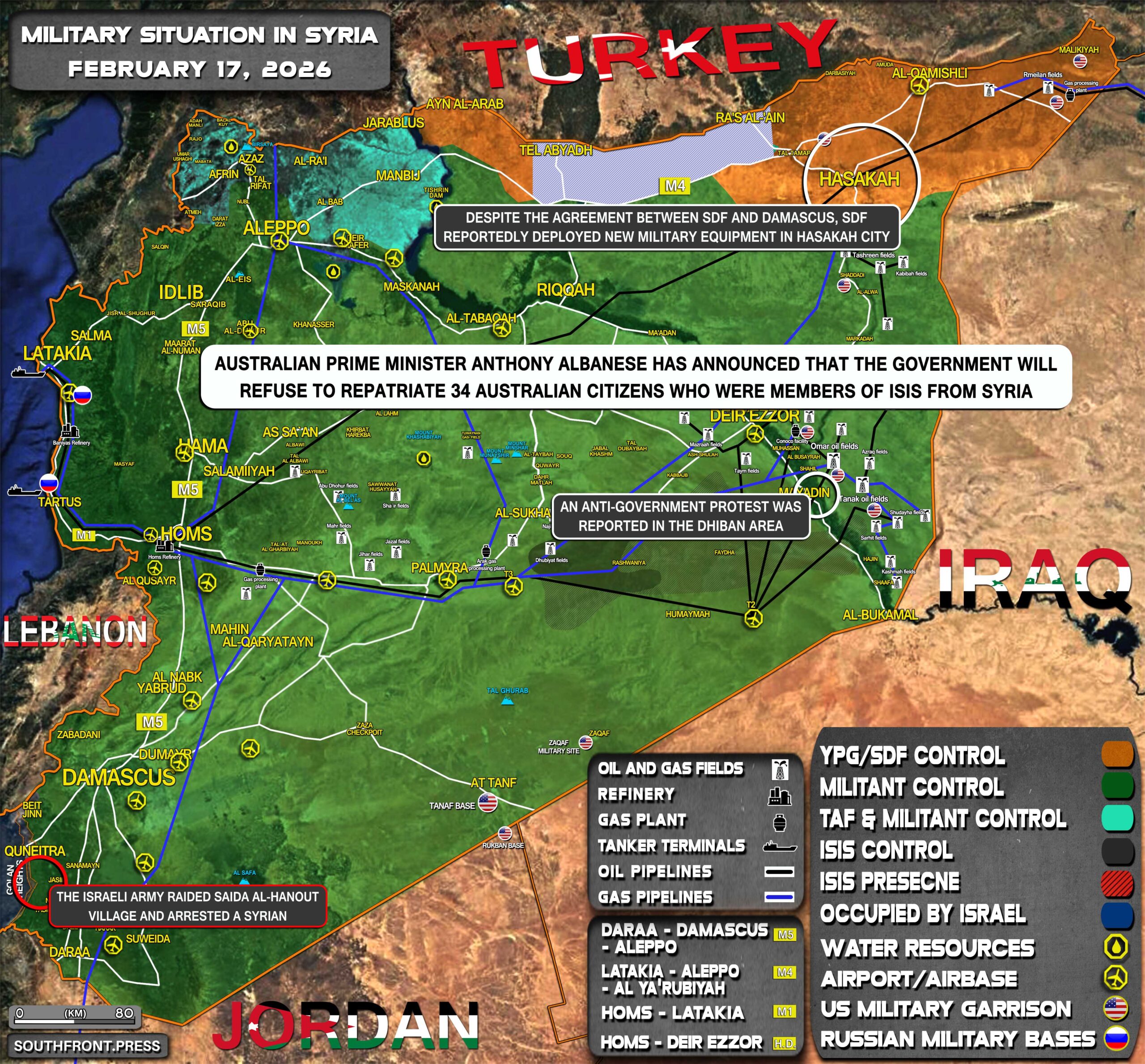 - Despite the agreement between SDF and Damascus, SDF reportedly deployed new military equipment in Hasakah city;