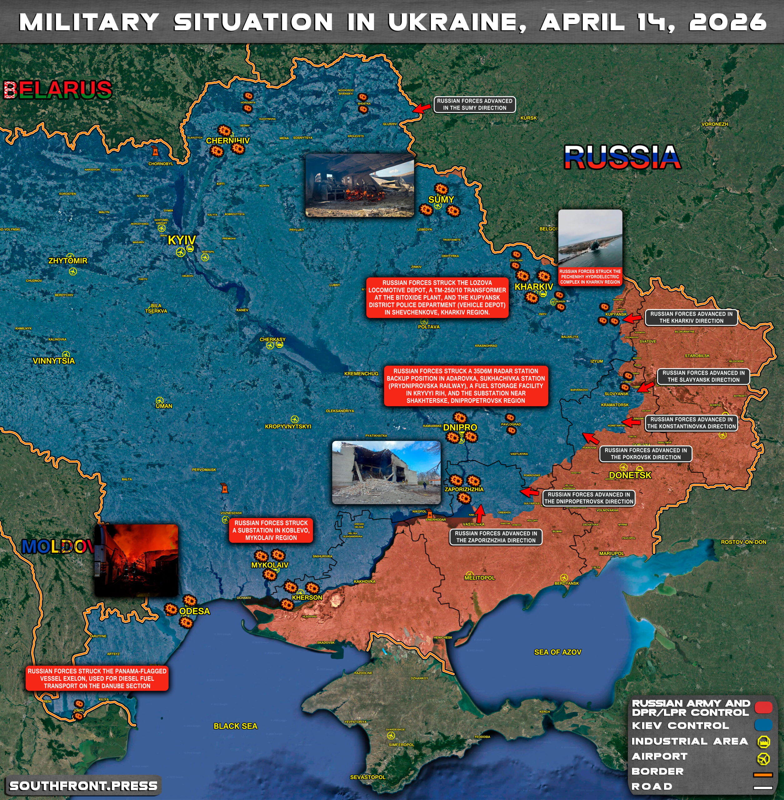 - Russian forces struck the Panama-flagged vessel EXELON, used for diesel fuel transport on the Danube section;