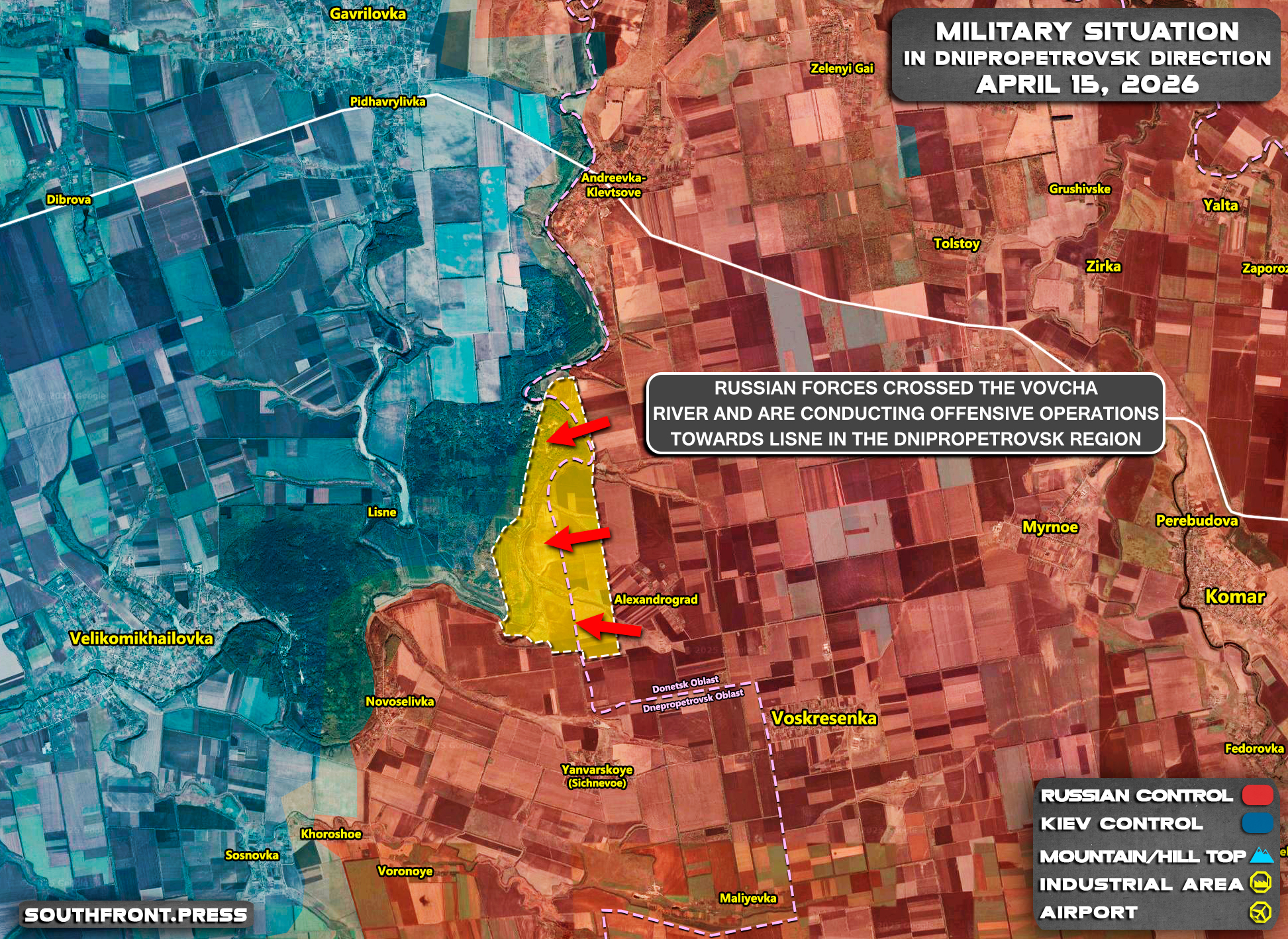 - Russian forces crossed the Vovcha River and are conducting offensive operations towards Lisne in the Dnipropetrovsk region.