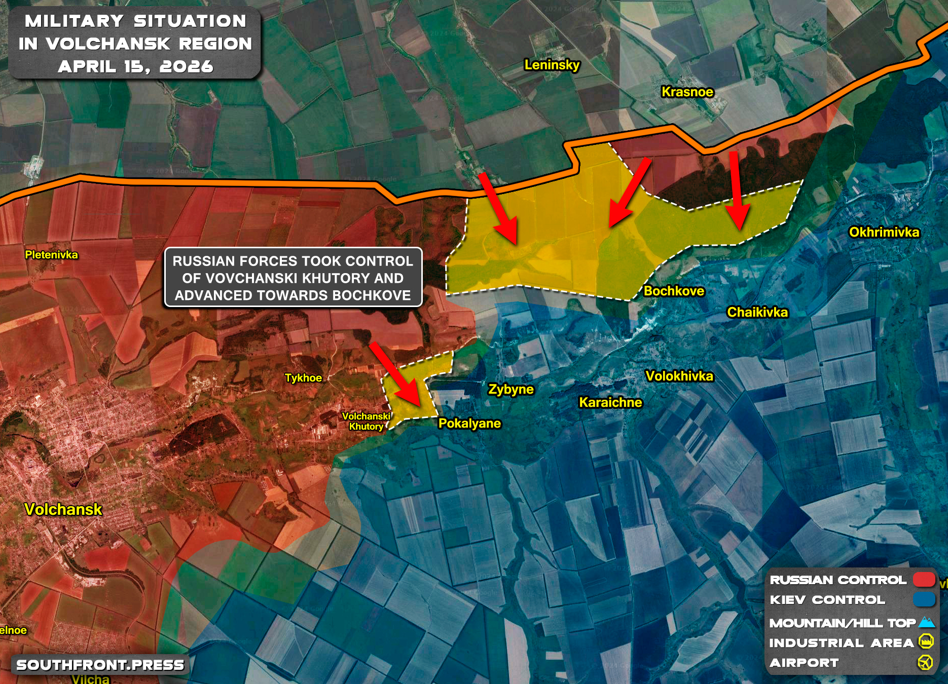 - Russian forces took control of Vovchanski Khutory and advanced towards Bochkove.