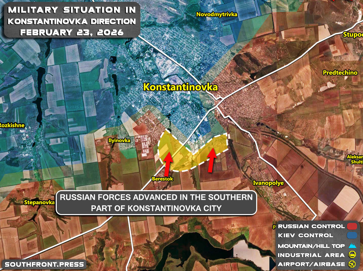 - Russian forces advanced in the southern part of Konstantinovka city.