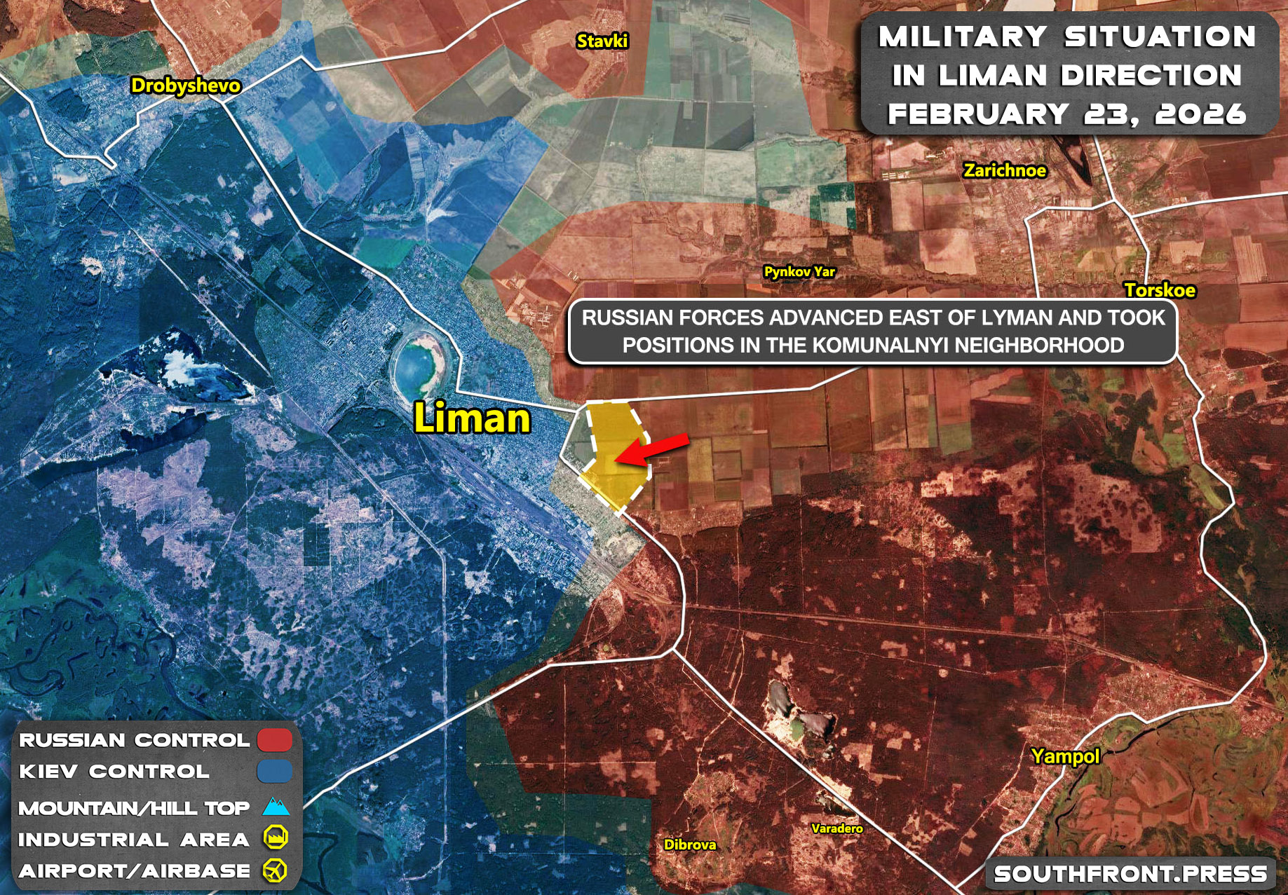 - Russian forces advanced east of Lyman and took positions in the Komunalnyi neighborhood.