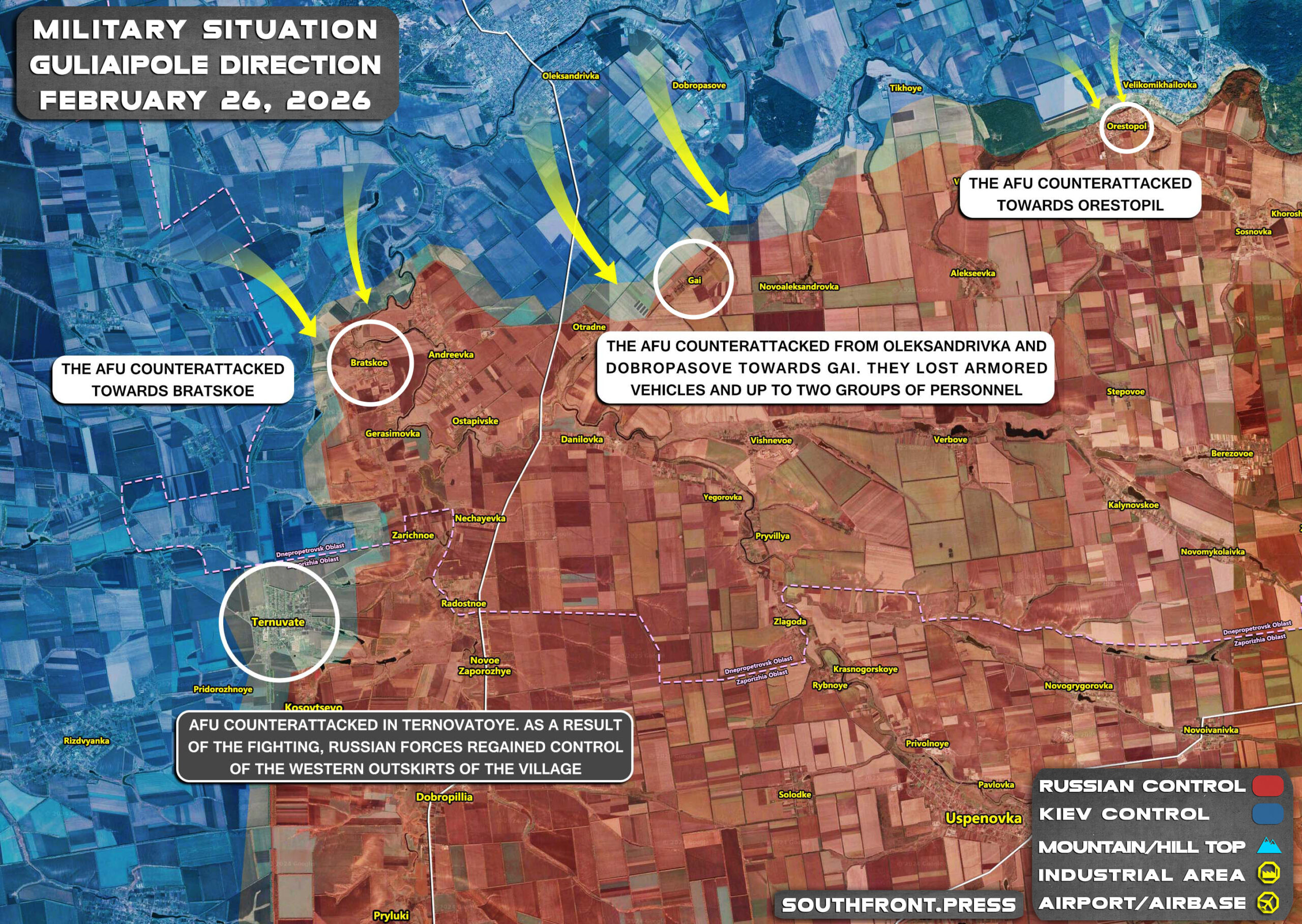 - The AFU (4 assault groups on 2 MT-LBs and 2 AFVs) counterattacked towards Bratskoe.