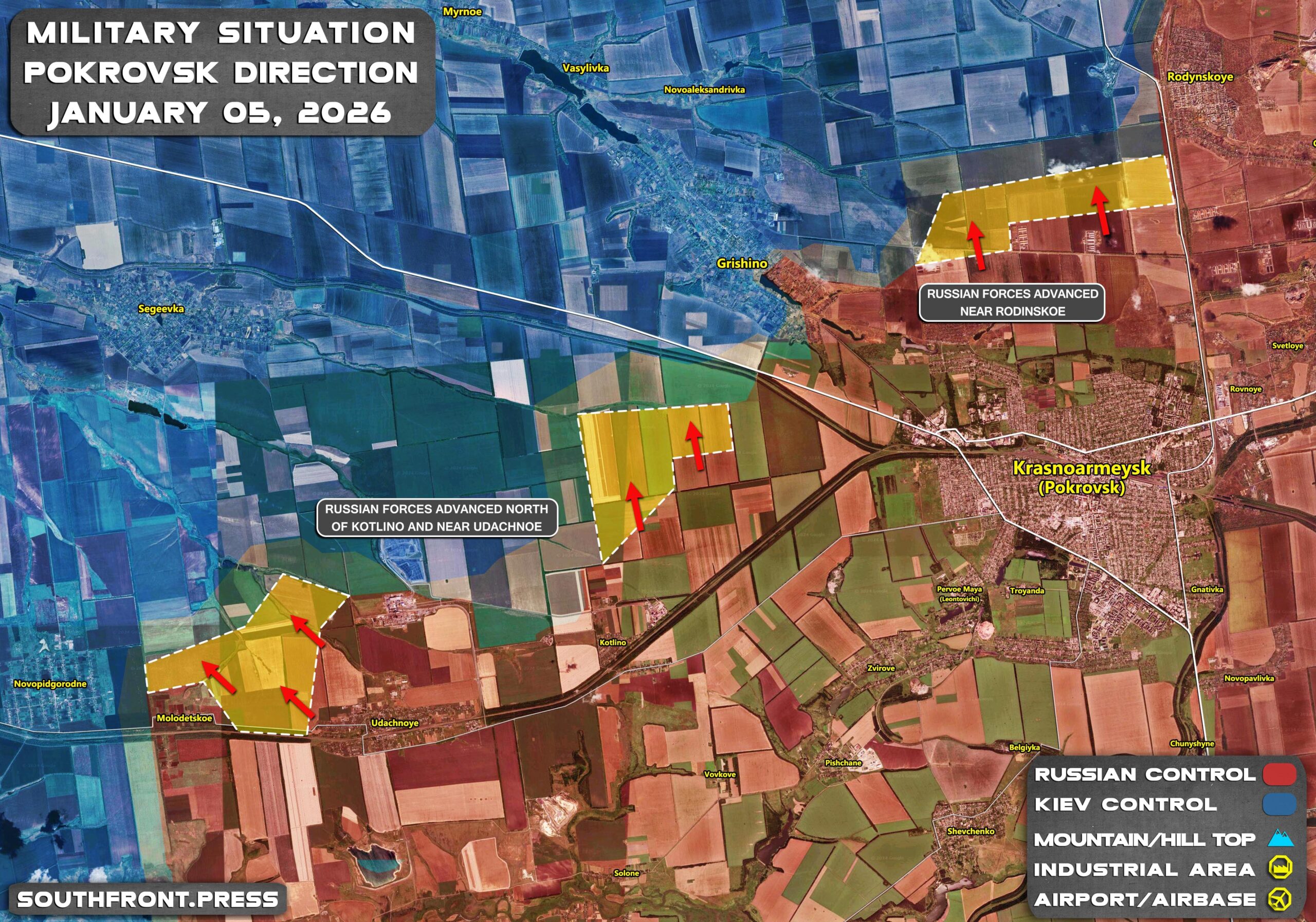 - Russian forces advanced north of Kotlino and near Udachnoe;