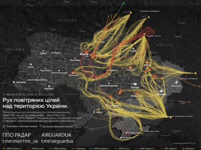 On the night of February 26, just four days after the previous massive raid, Ukraine was subjected to a new combined air attack. According to the Ukrainian Air Force, Russian forces used a wide range of weapons: two Zircon anti-ship missiles, 11 Iskander-M and S-400 ballistic missiles, 24 Kh-101 cruise missiles, two Kh-69 guided air-launched missiles, and 420 strike drones.