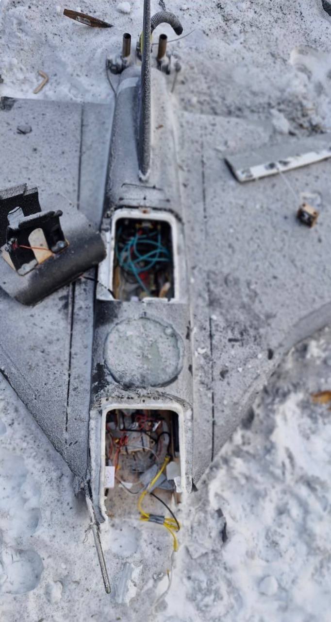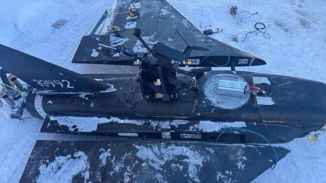 Photos showing the wreckage of one such drone were shared by Ukrainian media on February 4. A mount was installed on top of the drone fuselage to carry a single quadcopter in a forward tilted angle.