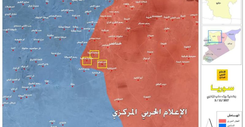 This map provides a general look at the military situation in Syria and Iraq on November 1, 2017. The Syrian…