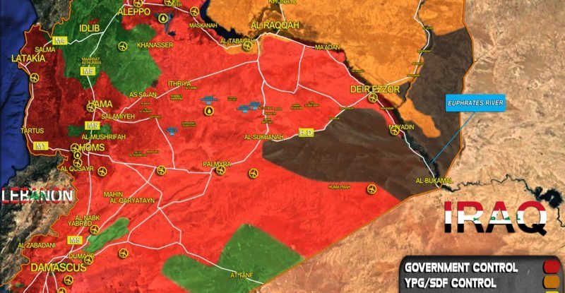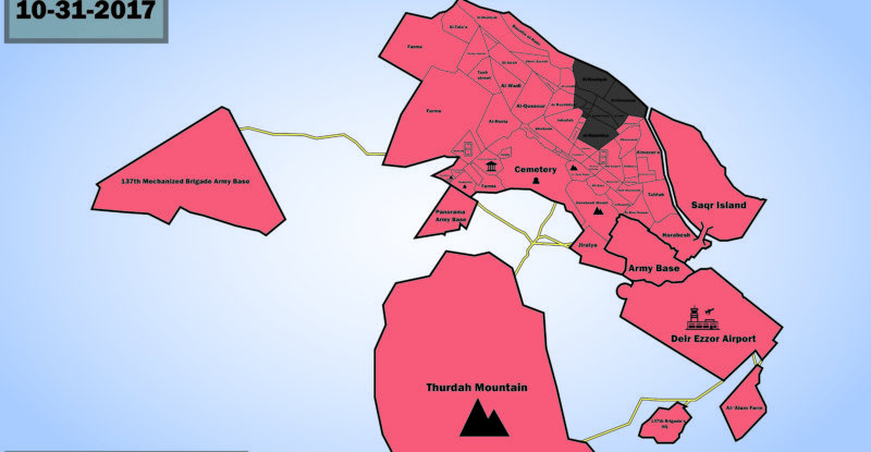 This map provides a general look at the military situation in central Syria on October 30, 2017: The US-backed Syrian…