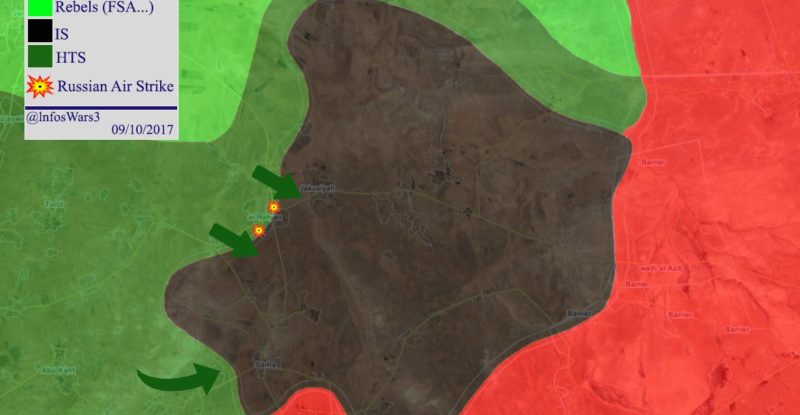 This map provides a general look at the military situation in central Syria on October 10, 2017. Syrian government forces…