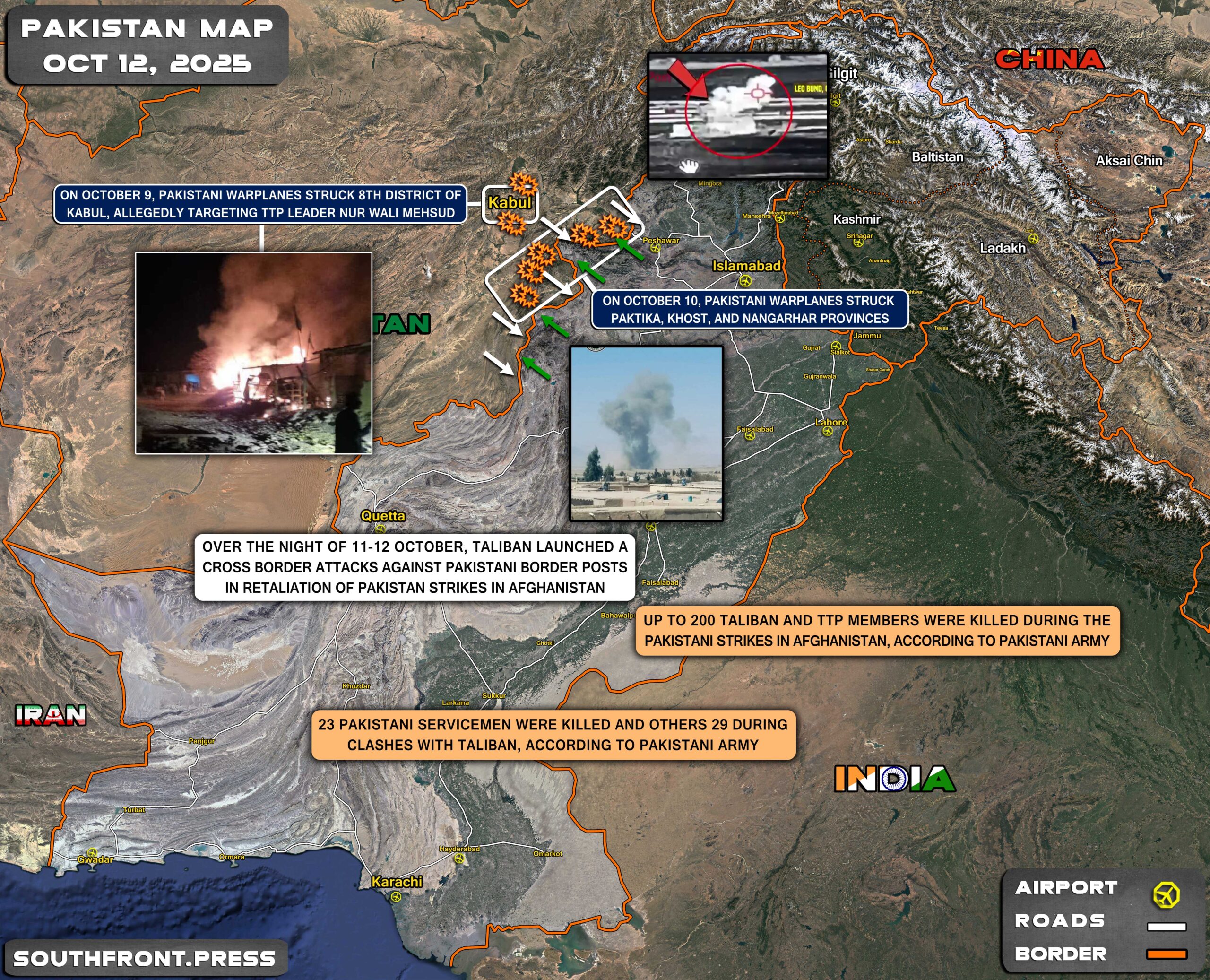 - On October 10, Pakistani warplanes struck Paktika, Khost, and Nangarhar provinces;