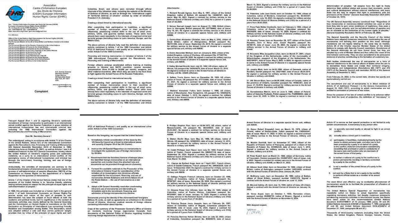 The full text of the appeal, as well as a list of identified foreign mercenaries, can be found below.