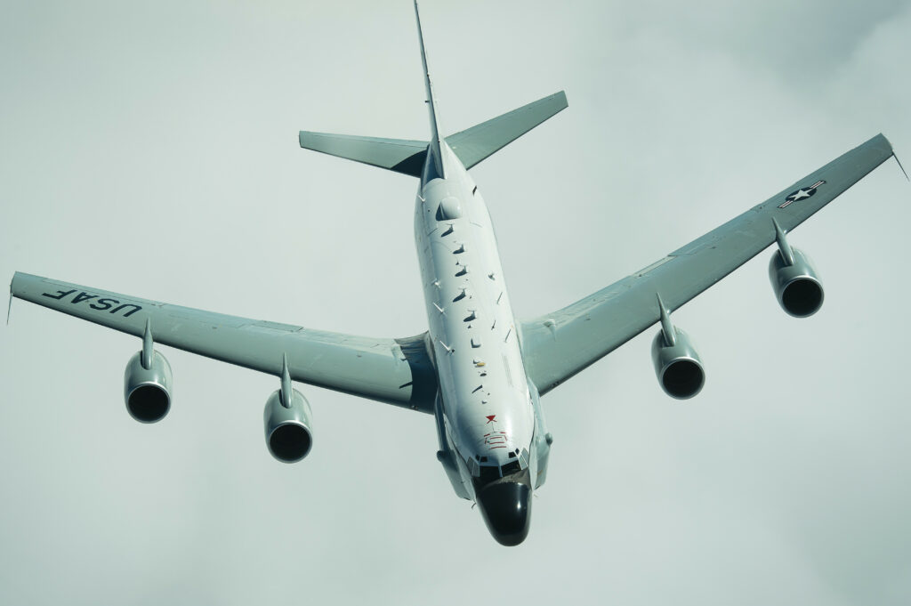 The RC-135W is the standard airborne signal intelligence platform for the U.S. Air Force. It was developed by a number of companies, including General Dynamics, Lockheed, LTV, E-Systems and L3 Technologies.