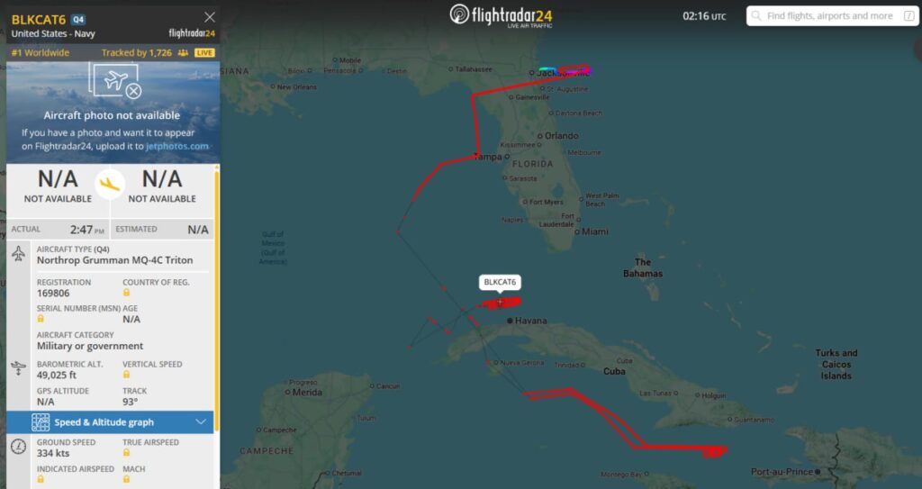 The drone, using the callsign BLKCAT6, made multiple passes near key areas, including the capital, Havana, and the region around Guantanamo Bay. It maintained an altitude of about 49,000 feet throughout the flight, according to aerial tracking data.