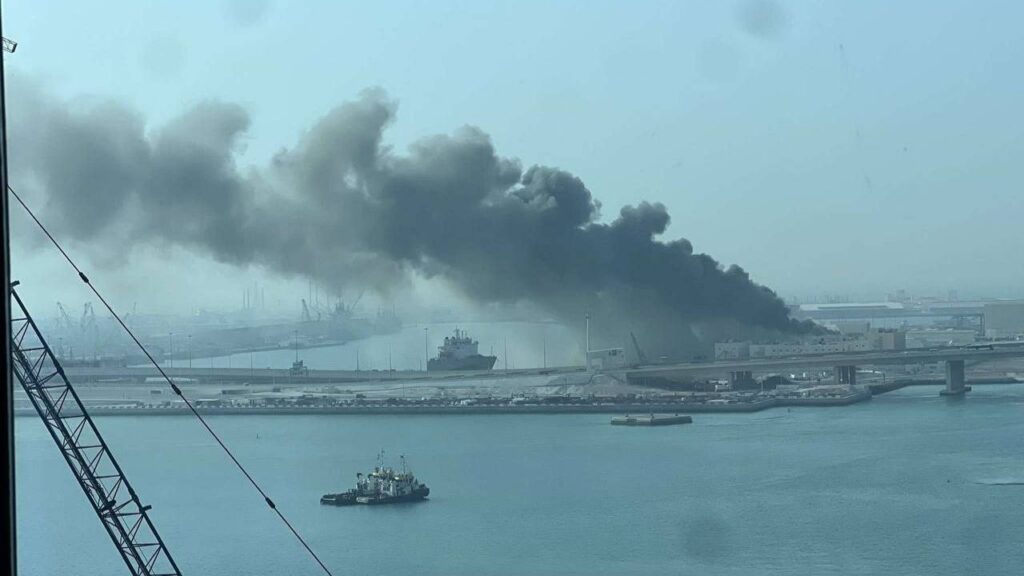 A fire also broke out at the port of the Jebel Ali in Dubai, the Middle East’s biggest port and the U.S. Navy’s busiest port of call in the region. The blaze was caused by debris from an interceptor, according to authorities.